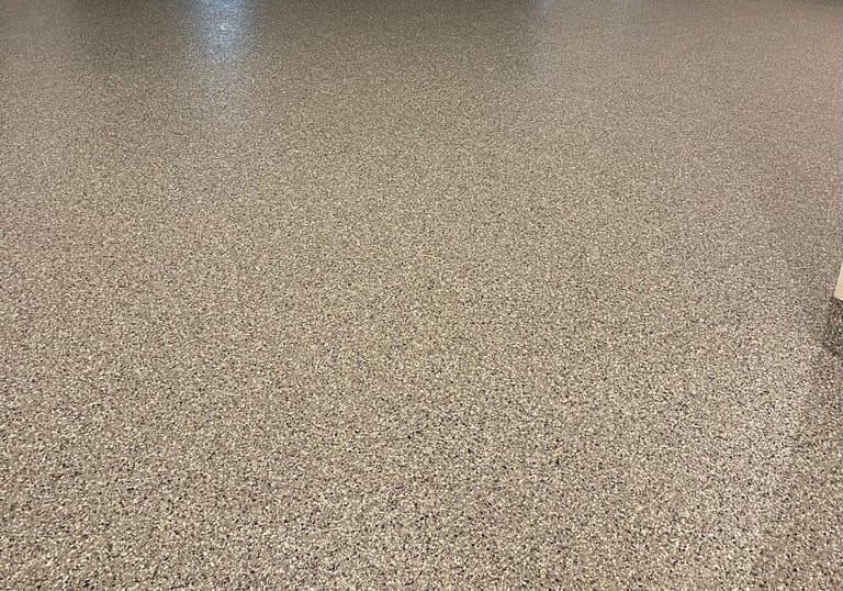 Durable epoxy with color flakes that add texture, style, and slip-resistance—perfect for garages and shops.